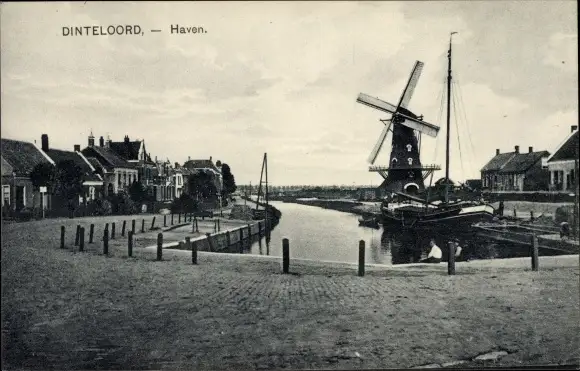 Ak Dinteloord Nordbrabant, Haven, Windmühle