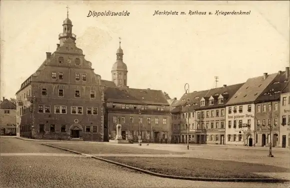 Ak Dippoldiswalde im Erzgebirge, Marktplatz, Rathaus, Kriegerdenkmal