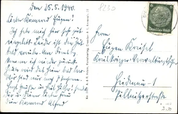 Zustand, siehe Scan, gelaufen, 1940 - ca 14 cm X 9 cm
