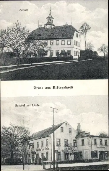 Ak Dittersbach Frankenberg an der Zschopau, Schule, Gasthof zur Linde