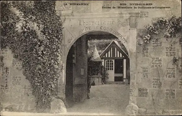 Ak Dives sur Mer Calvados, Entrée de l´Hostellerie Guillaume le Conquérant