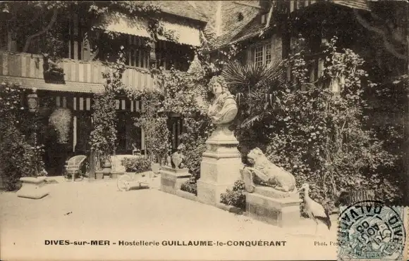 Ak Dives sur Mer Calvados, Hostellerie Guillaume le Conquerant, Büste