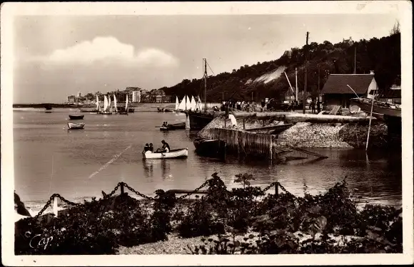 Ak Dives sur Mer Calvados, Le Port, Vue vers Houlgate