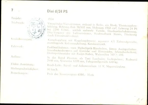 Ak Dixi 6/24 PS, Baujahr 1924, Automobil