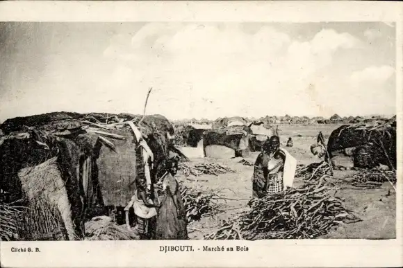 Ak Djibouti Dschibuti, Huttes de Numades, Holzhändler