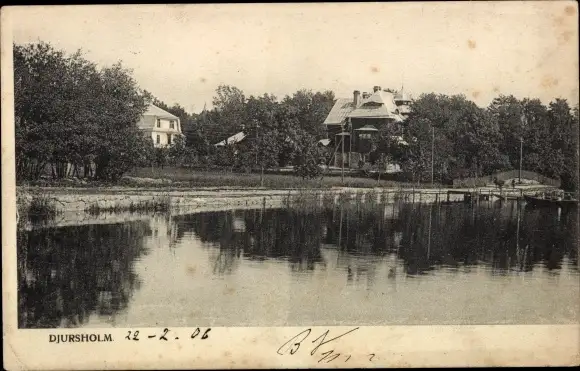 Ak Djursholm Danderyd Schweden, Villa am Ufer