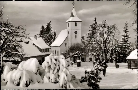 Ak Dobel im Schwarzwald, Kirche, Winter