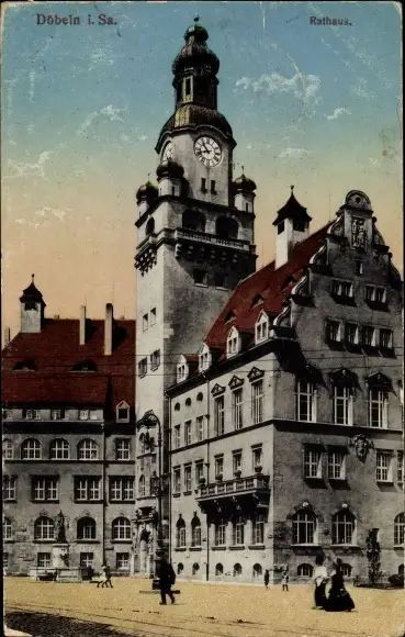 Ak Döbeln, Ansicht des Rathauses, Gleise