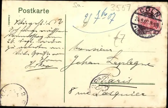gelaufen 1907, fleckig, sonst guter Zustand