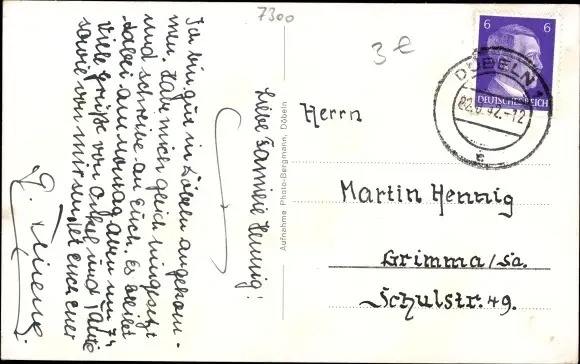Zustand, siehe Scan, gelaufen, 1942 - ca 14 cm X 9 cm