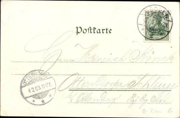 gelaufen 1903, Eckknick rechts unten, sonst guter Zustand