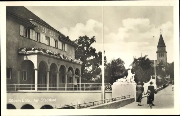 Ansichtskarte, Postkarte, Badeanstalt, Schwimmbad, Freibad, Strandbad, Volksbad