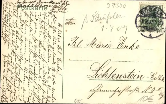 Zustand, siehe Scan, gelaufen, 1907 - ca 14 cm X 9 cm