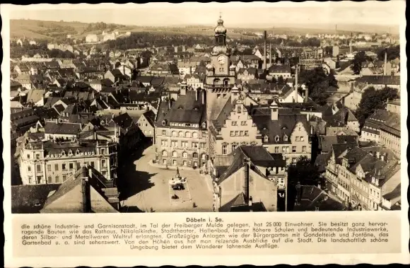 Ak Döbeln in Sachsen, Panorama mit Kirche, Springbrunnen