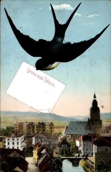 Ak Döbeln in Sachsen, Stadtansicht, Schwalbe mit Brief