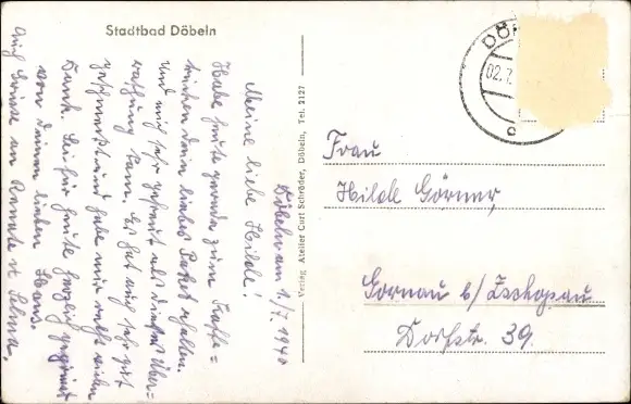 Zustand, siehe Scan, gelaufen, 1940 - ca 14 cm X 9 cm