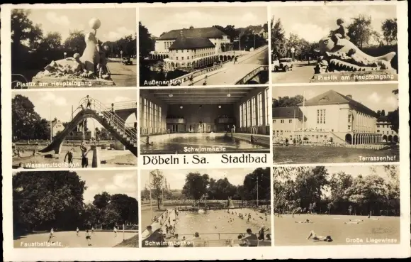 Ak Döbeln in Sachsen, Stadtbad, Plastik