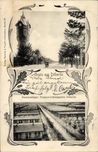 Ak Döberitz im Havelland, Truppenübungsplatz, Barackenlager, Turm