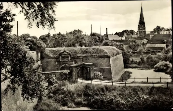 Ak Dömitz an der Elbe Mecklenburg, Blick vom Wall auf die Stadt
