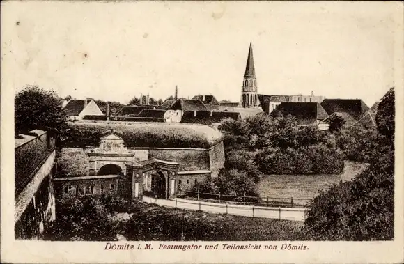 Ak Dömitz an der Elbe Mecklenburg, Festungstor und Teilansicht der Stadt