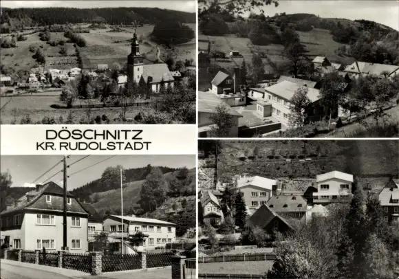 Ak Döschnitz an der Schwarza in Thüringen, Kirche, Teilansichten
