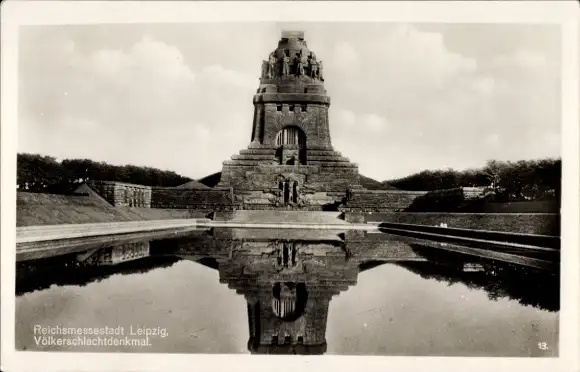 Ak Dösen Leipzig in Sachsen, Völkerschlachtdenkmal, Wasserreflexion, Architektur