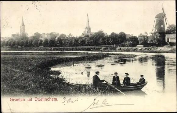 Ak Doetinchem Gelderland, Teilansicht, Kirche, Windmühle
