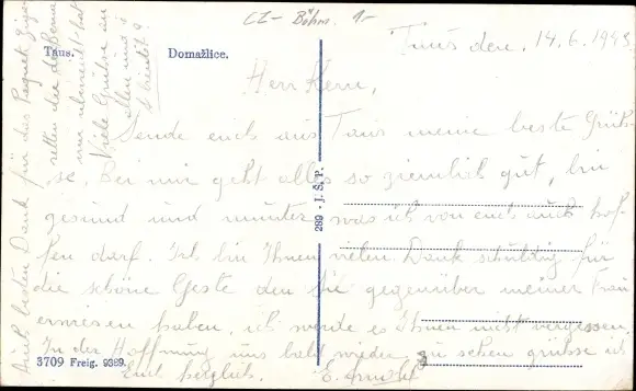 Ansichtskarte, Postkarte, Plzeň, Pilsen, Domažlice, Taus
