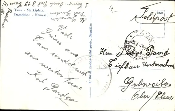 Ansichtskarte, Postkarte, Plzeň, Pilsen, Domažlice, Taus