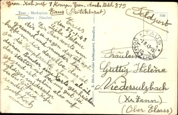 Ansichtskarte, Postkarte, Plzeň, Pilsen, Domažlice, Taus