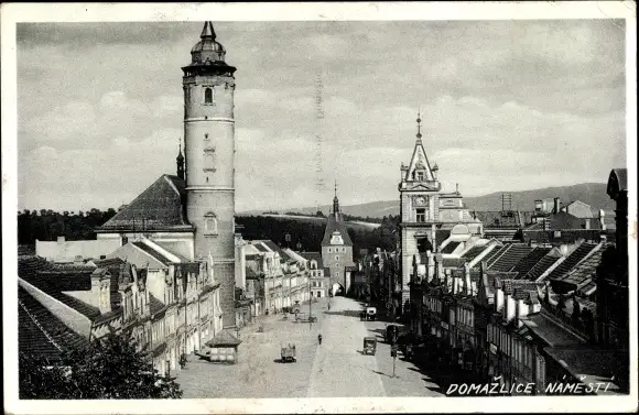 Ak Domažlice Taus Region Pilsen, Straßenpartie, Turm