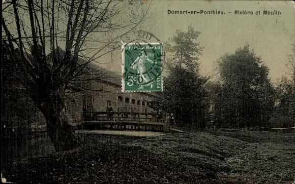 Ak Domart in Ponthieu Somme, Riviere, Moulin
