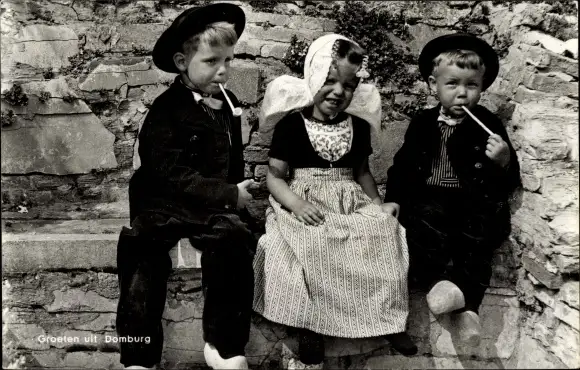Ak Domburg Veere Zeeland Niederlande, Kinder in Tracht