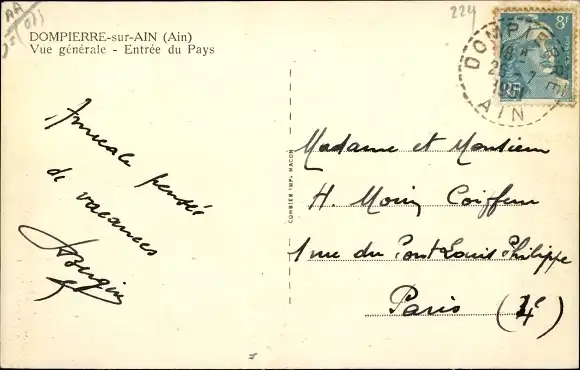 Ak Dompierre sur Ain, Vue generale, Entree du Pays