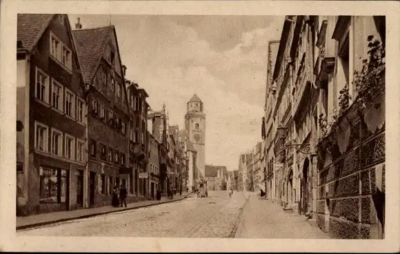 Ak Donauwörth in Schwaben Bayern, Turm, Geschäfte, Teilansicht