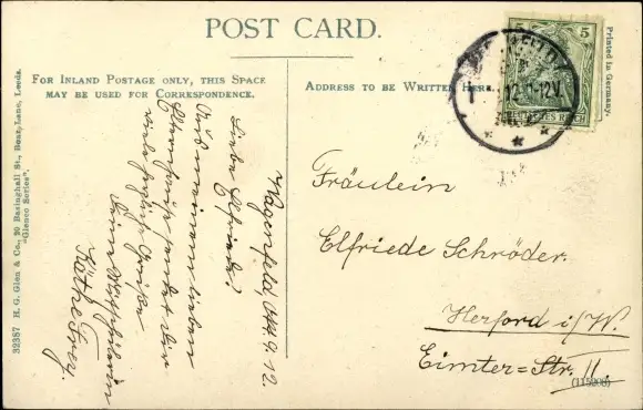 Zustand, siehe Scan, gelaufen, 1912 - ca 14 cm X 9 cm