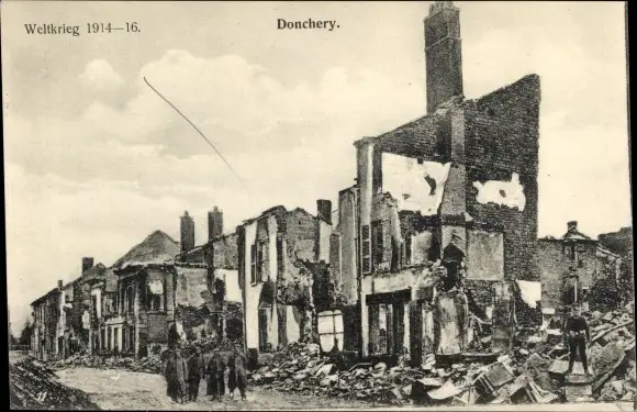 Ak Donchery Ardennes, Weltkrieg 1914-16, Kriegszerstörungen