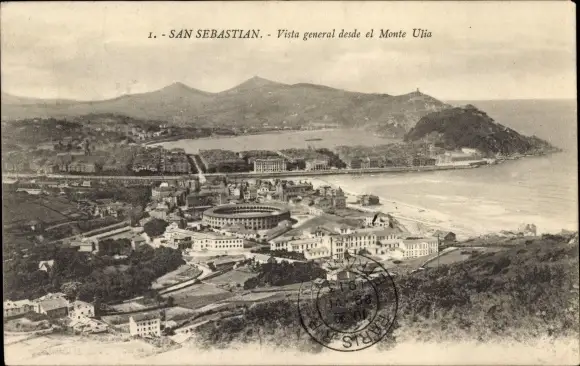 Ak Donostia San Sebastian Baskenland, Gesamtansicht, Mount Ulia