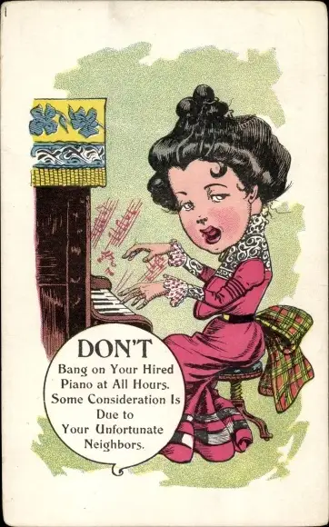 Ak Don't bang on your hired piano at all hours, some consideration to your unfortunate neighbors