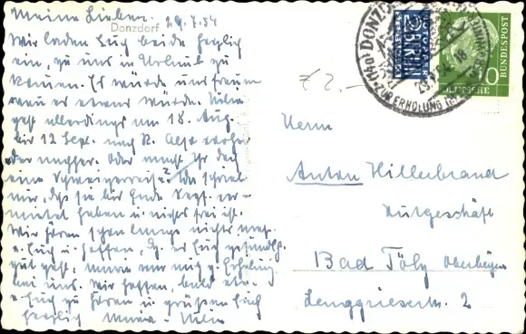 Zustand, siehe Scan, gelaufen, 1954 - ca 14 cm X 9 cm