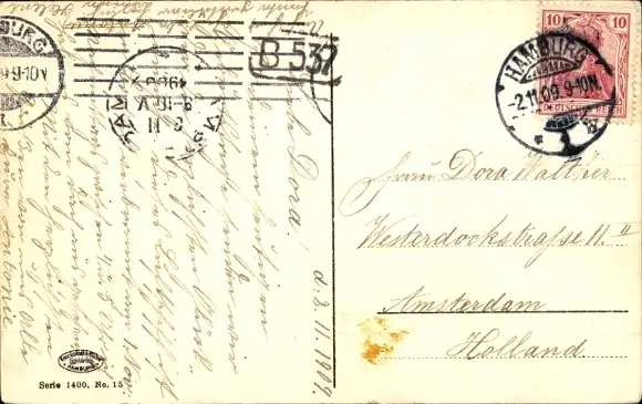Zustand, siehe Scan, gelaufen, 1909 - ca 14 cm X 9 cm