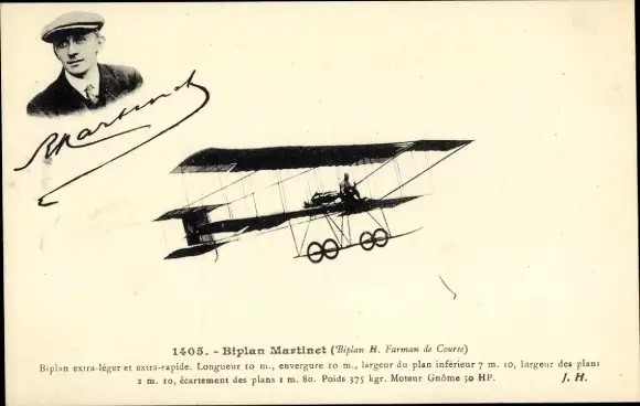 Ak Doppeldecker Martinet, H. Farman Racing Doppeldecker