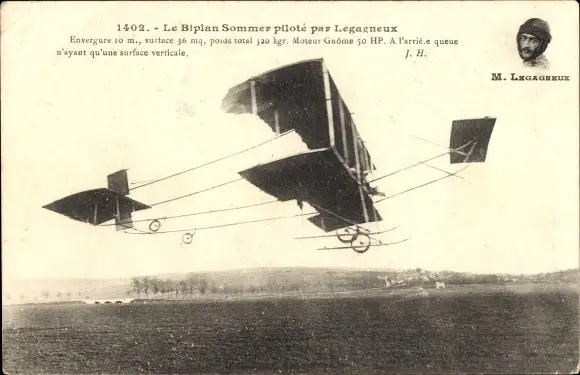 Ak Doppeldecker Sommer, gesteuert von Legagneux