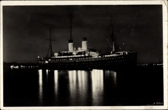 Ak Doppelschrauben Motorschiff MS Monte Sarmiento, HSDG, Nachtbeleuchtung