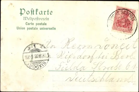 Zustand, siehe Scan, gelaufen, 1908 - ca 9 cm X 14 cm