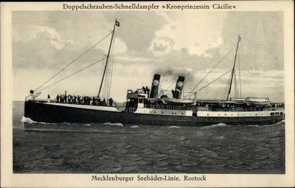 Ak Doppelschrauben Schnelldampfer Kronprinzessin Cecilie, Mecklenburger Seebäder Linie Rostock