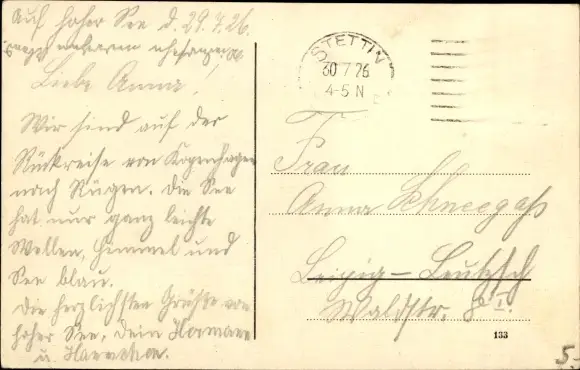 Zustand, siehe Scan, gelaufen, 1926 - ca 14 cm X 9 cm