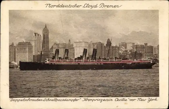 Ak Doppelschrauben-Schnellpostdampfer Kronprinzessin Cecilie, NDL, vor New York