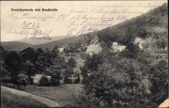 Ak Dorfchemnitz im Erzgebirge, Totalansicht mit Buchleite