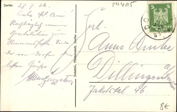 Zustand, siehe Scan, gelaufen, 1926 - ca 14 cm X 9 cm
